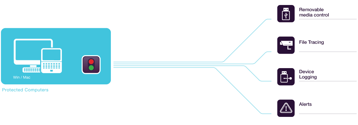 Para la protección de datos para pequeñas oficinas o uso doméstico, Endpoint Protector Basic está diseñado para proteger su computadora independiente del robo de datos. Si deja su computadora Mac / Windows desbloqueada, alguien más podría acceder a ella y quitar datos importantes en sus unidades flash USB u otros dispositivos portátiles de almacenamiento.
