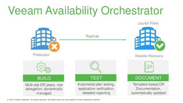 Veeam® Availability Orchestrator solucionará estos problemas ofreciendo a las empresas un motor de organización de recuperación ante desastres (DR) para réplicas de Veeam Backup & Replication. Cree, documente y pruebe, automáticamente, los planes de DR que están completamente preparados para la firma de ejecutivos y accionistas, comprobando a su vez el cumplimiento de las regulaciones y auditorias de la industria de la más alta calidad.