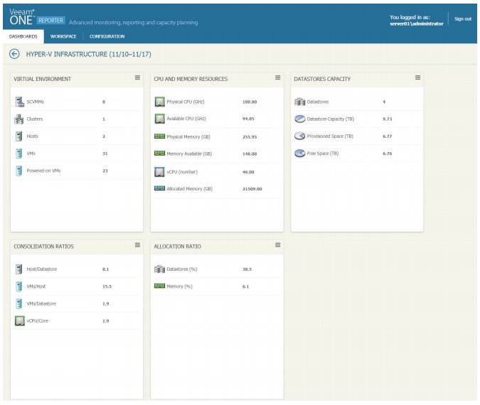 Veeam® ONE™ se integra a la perfección con Veeam Backup & Replication para proporcionar funciones de monitorización avanzada, generación de informes y "capacity planning" diseñadas para ayudarle a proteger sus cargas de trabajo virtuales, físicas y cloud.